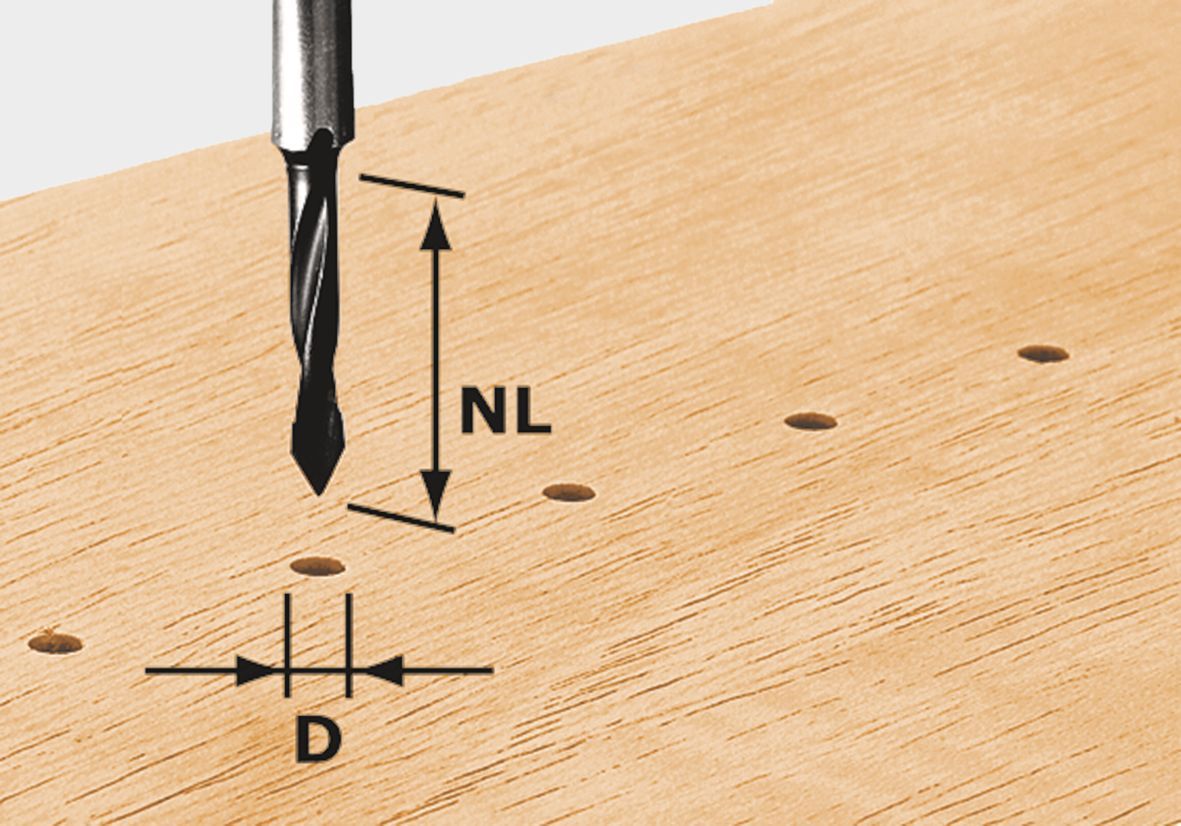 - Durchgangsbohrer für Lochreihen, mit langer HW Bohrspitze zum Durchfräsen von Platten geeignet