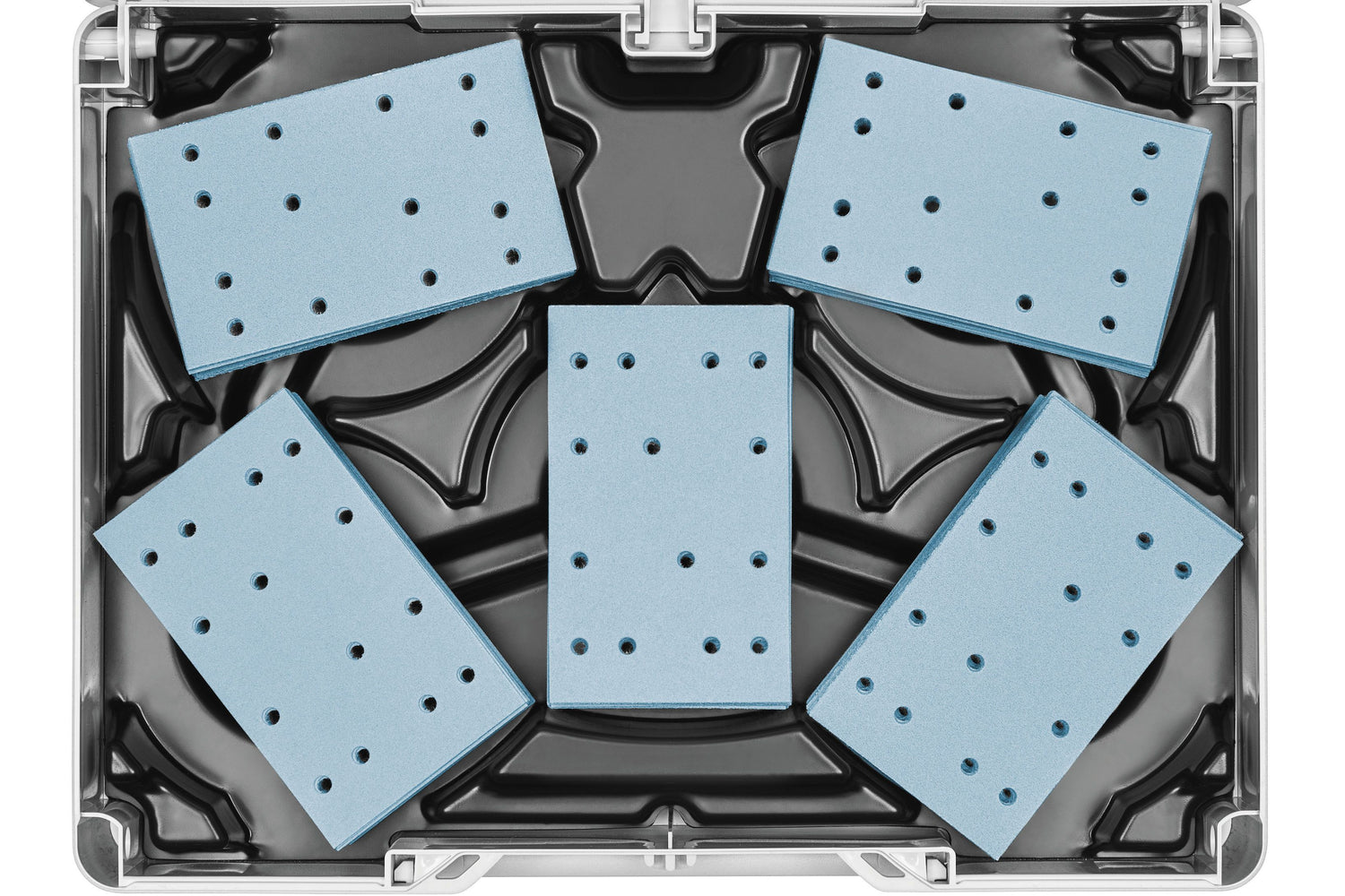 - In diesen Systainer passen 3 unterschiedliche Schleifmittelformate