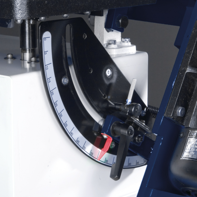 - Stufenlos schrägverstellbares Schleifaggregat (0 - 90°) für vertikales und horizontales Schleifen