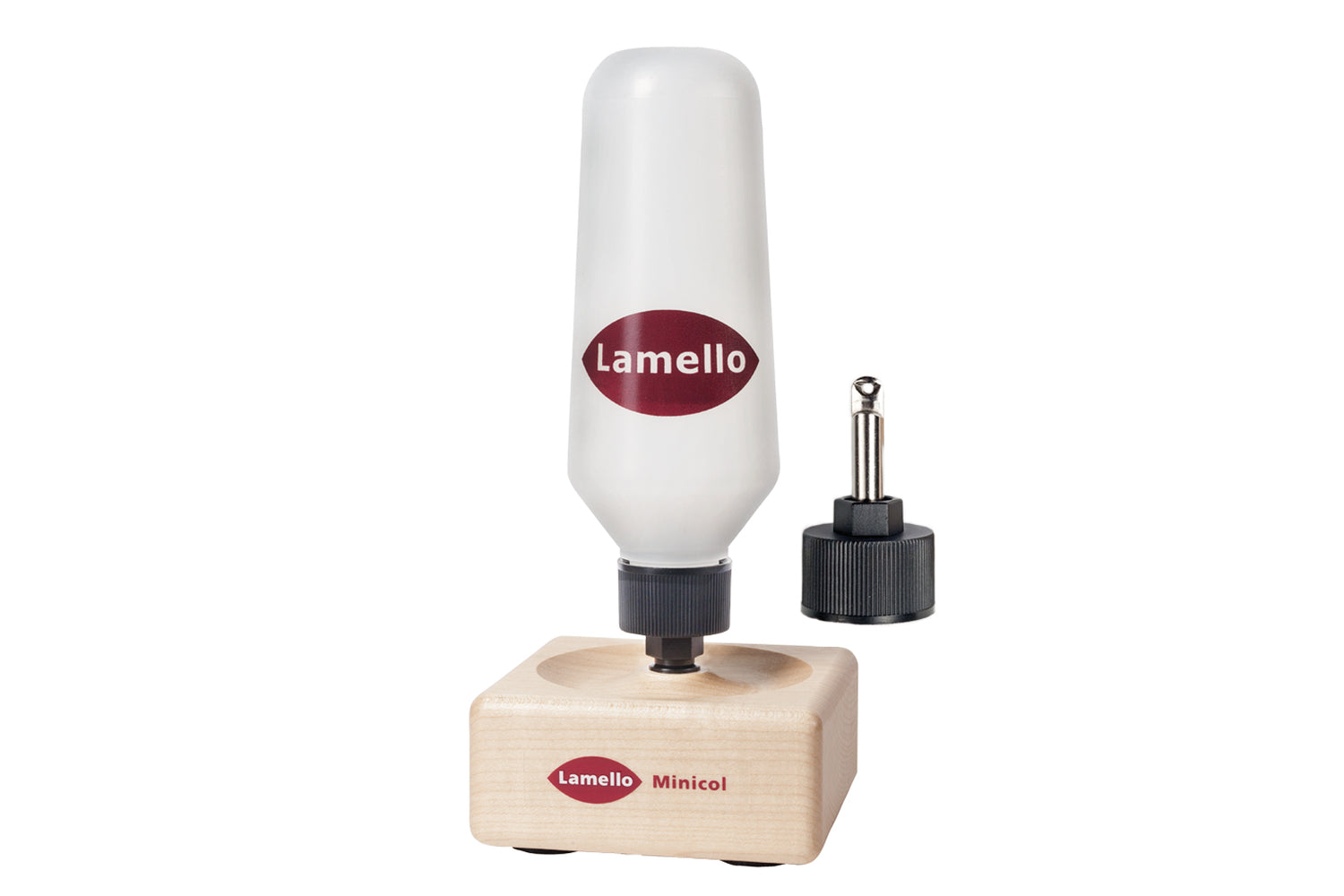 Da die Leimgeräte mit den Düsen nach unten im Holzsockel stehen, tritt der Leim sofort aus und das Austrocknen wird verhindert.